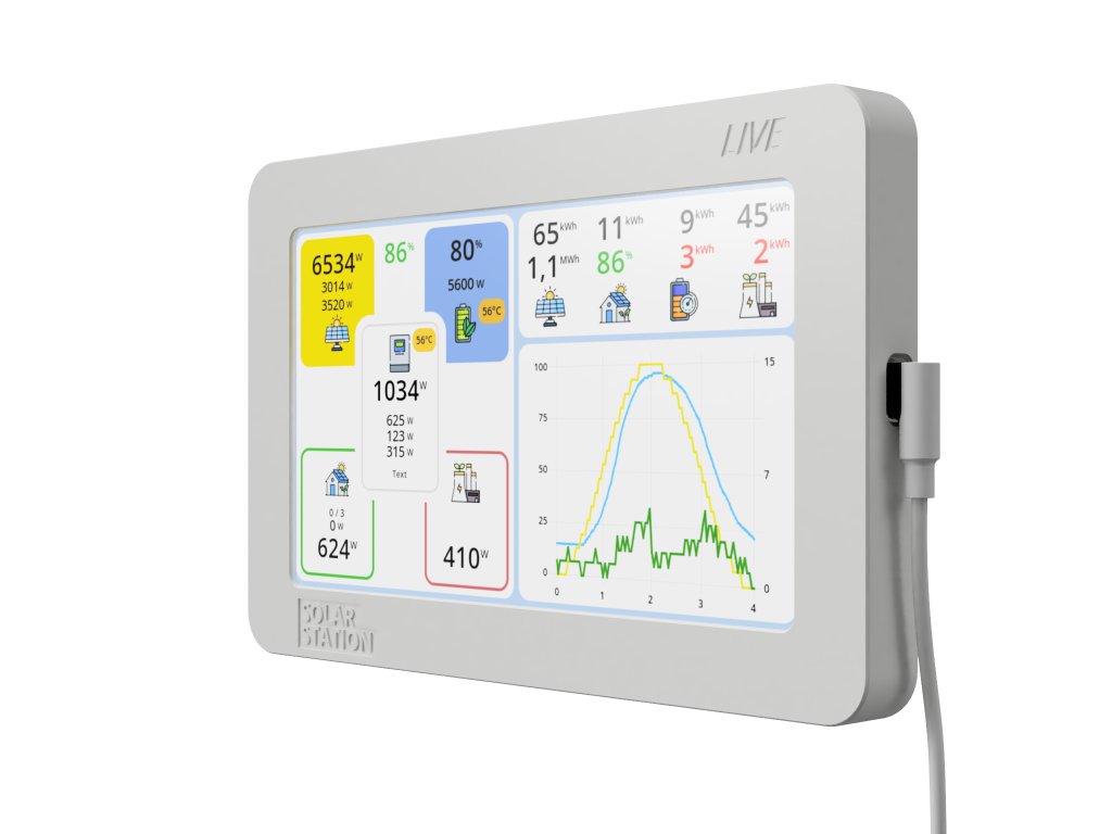 SOLAR STATION Live ist eine Monitoring-Station für die am häufigsten verwendeten Wechselrichter. Die Station zeigt Live-Daten vom Wechselrichter an und muss sich in dessen Reichweite befinden. Sie zeigt übersichtlich den Energiefluss, die heutigen Statistiken und ein Produktionsdiagramm der letzten 24 Stunden auf einem 7" Farbdisplay.